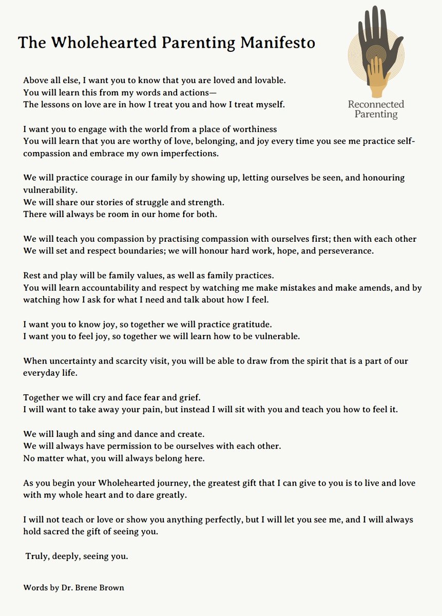 Parenting Manifesto Brene Brown : The Gifts Of Imperfect Parenting Raising Children With Courage Compassion And Connection Brown Brene 9781604079739 Amazon Com Books : How many of us want to teach our children to be worthy, but don't feel worthy ourselves?. Wholehearted parenting manifesto by dr brené brown. ""we will practice courage in our family by showing up"". Doctor brene brown read hers to oprah and made her cry. We enjoyed brené brown's book daring greatly and in particular her wholehearted parenting manifesto. The wholehearted parenting manifesto download.